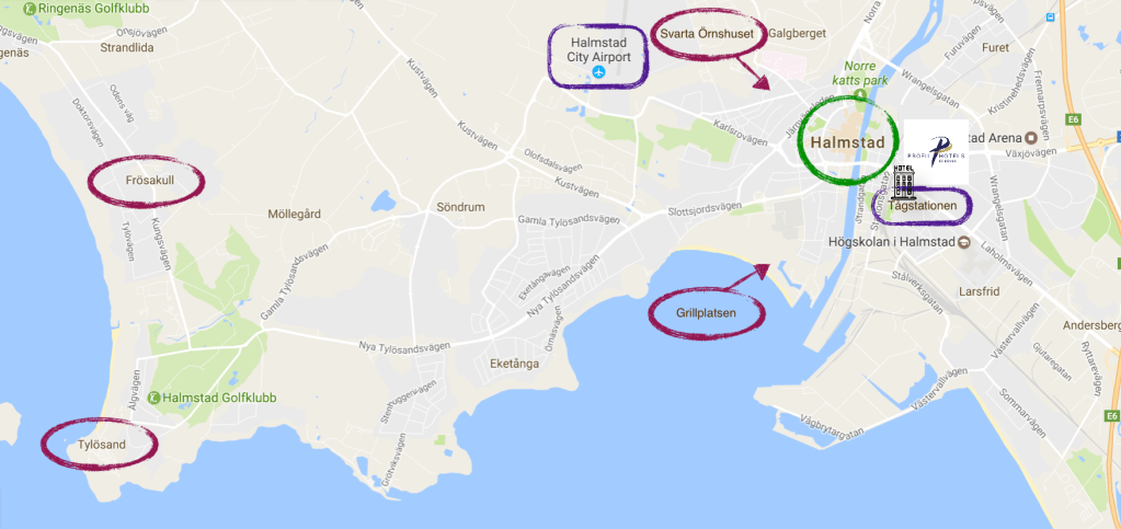 Hallandstrafiken (De har en bra app för aktuell tidtabell etc. Man kan betala för sin resa med betalkort på bussen).